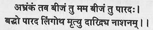 It states that the way an individual feels eternal happiness & satisfaction after worshipping their Lord, an aura of the Lord due to which various disorders are cured,similar kind of an experience is felt by just the sight of Parad Shivling. It further states that such an Amrutmayi (Nectar like), Sudhasiddha (Purified) object should be worshipped. It further explains that worshipping Parad Shivling leads to eternal peace and happiness (i.e. A person is relieved from material things like Birth, Death, Oldage, Weakness, Pain of dreadfull bodily diseases). Further it explains that Para (Mercury) is a by-product out of conception of Lord Shiva and Goddess Parvati, hence in different forms it relieves human beings of their physical, spiritual, psychological disorders. Hence it is also described as Ellixir and Philospohers Stones by many.